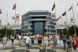 Charlotte Motor Speedway (formerly Lowe's Motor Speedway) is a superspeedway in Concord, North Carolina, a few miles north of Charlotte. It features a 1.5 mile long quad-oval track that seats 167,000 people, with room for 50,000 more spectators in the infield. Constructed in 1959, it was the first speedway to host nighttime racing (in 1992) and to offer year-round residences (in 1984) with 52 condominiumss now available near turn one. It is presently owned by and is the main facility of, Speedway Motorsports The speedway is considered the center of NASCAR, with 90% of NASCAR teams being based within 50 miles.