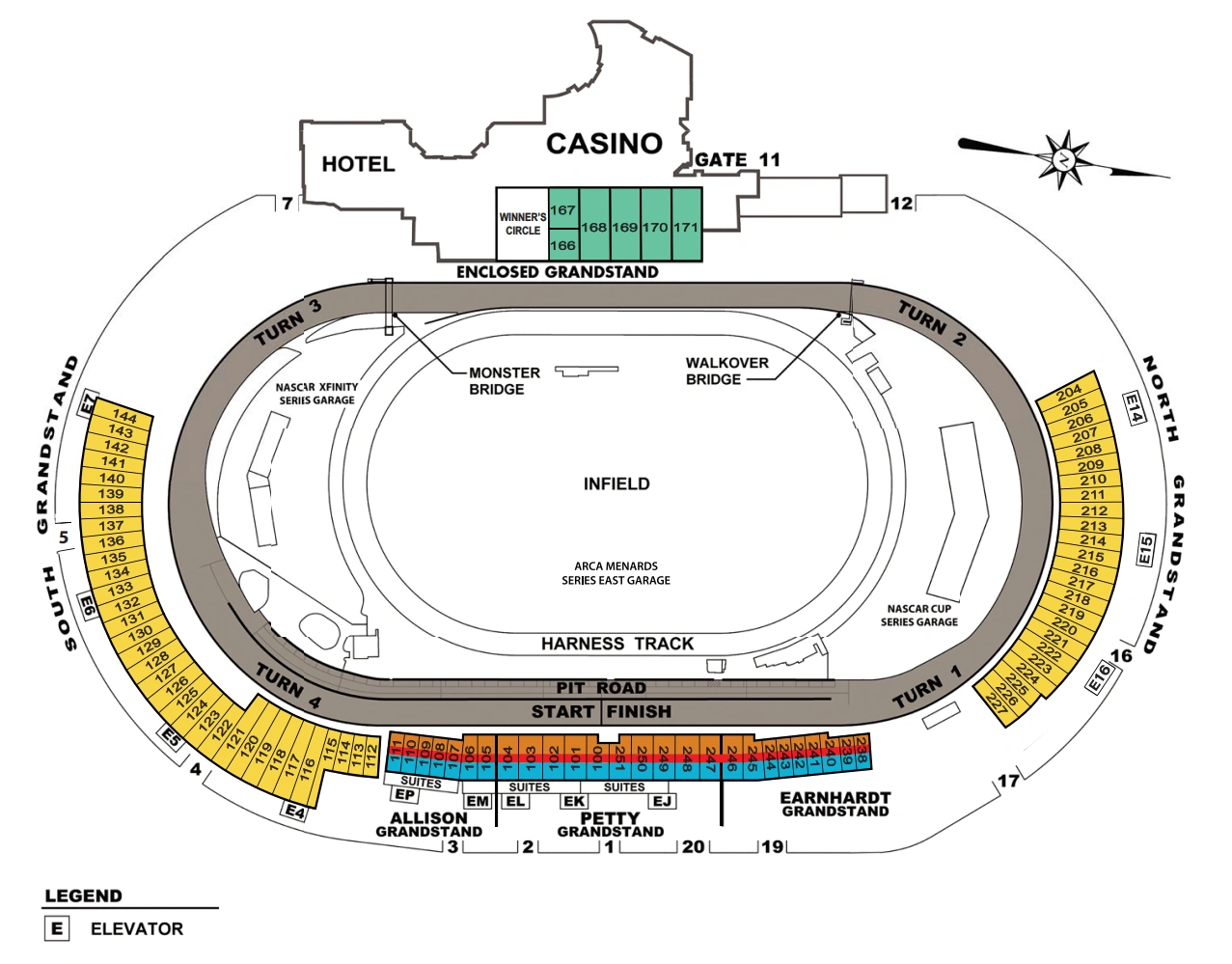 Due to the track’s steep banking, relatively long turns and short straights, and a history of both long, grueling races for the drivers and equipment and unexpectedly severe crashes, Dover has the nickname “The Monster Mile”. It currently hosts 1 Cup Race, 1 Xfinity Series race, and 1 ARCA Menards East race.